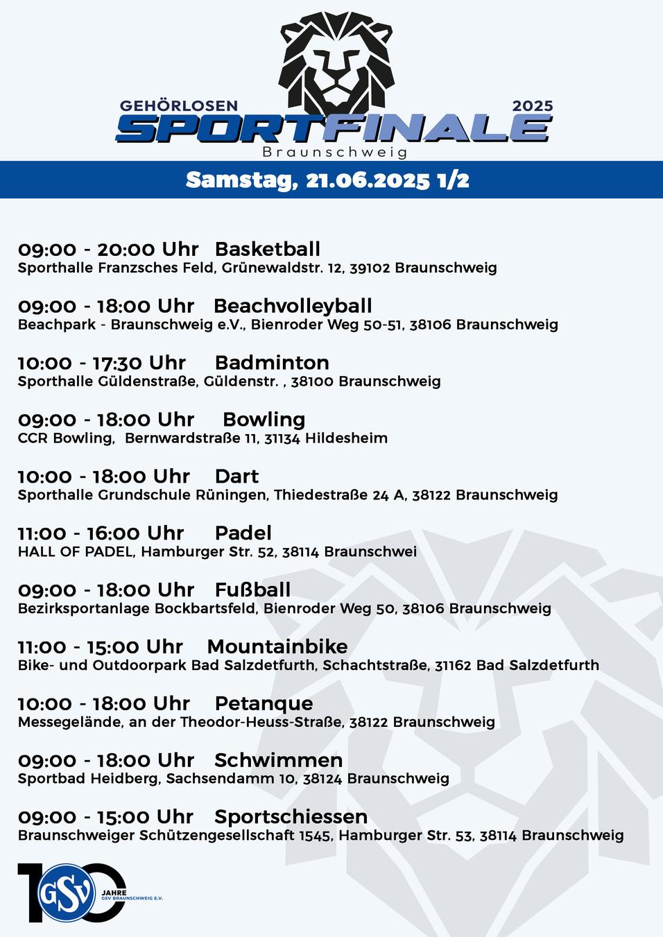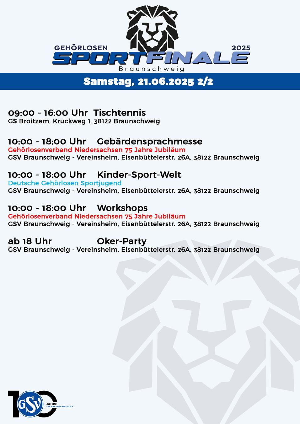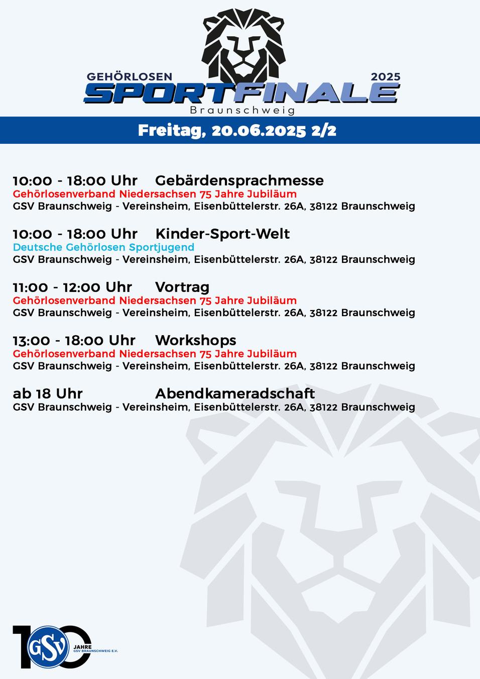 SportFinale 2025 vom GSV Braunschweig und Kulturveranstaltung vom Gehörlosenverband Niedersachsen. Es gibt ein vielseitiges Programmangebot.