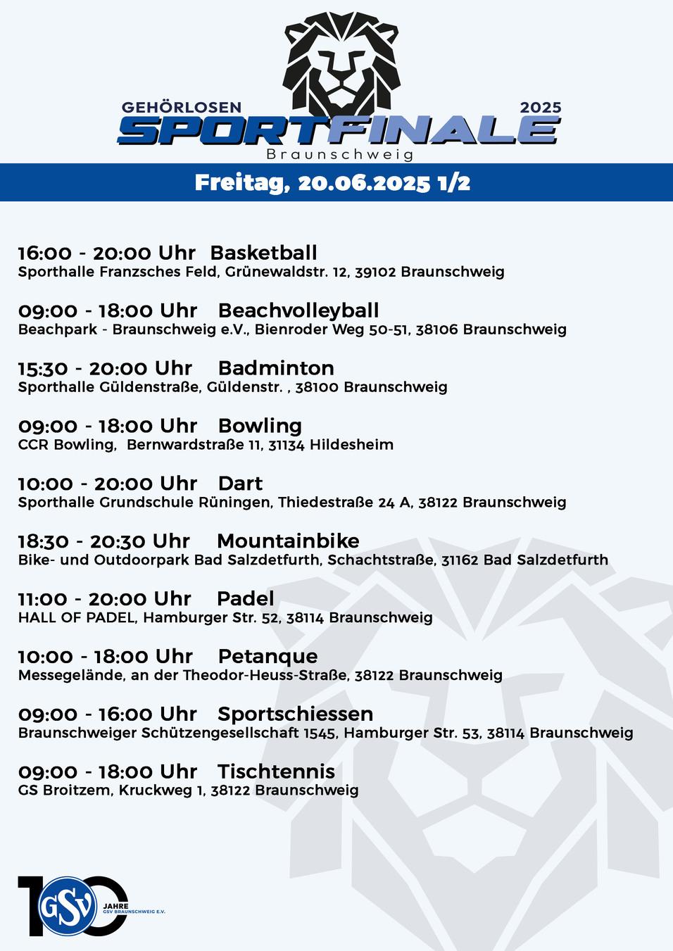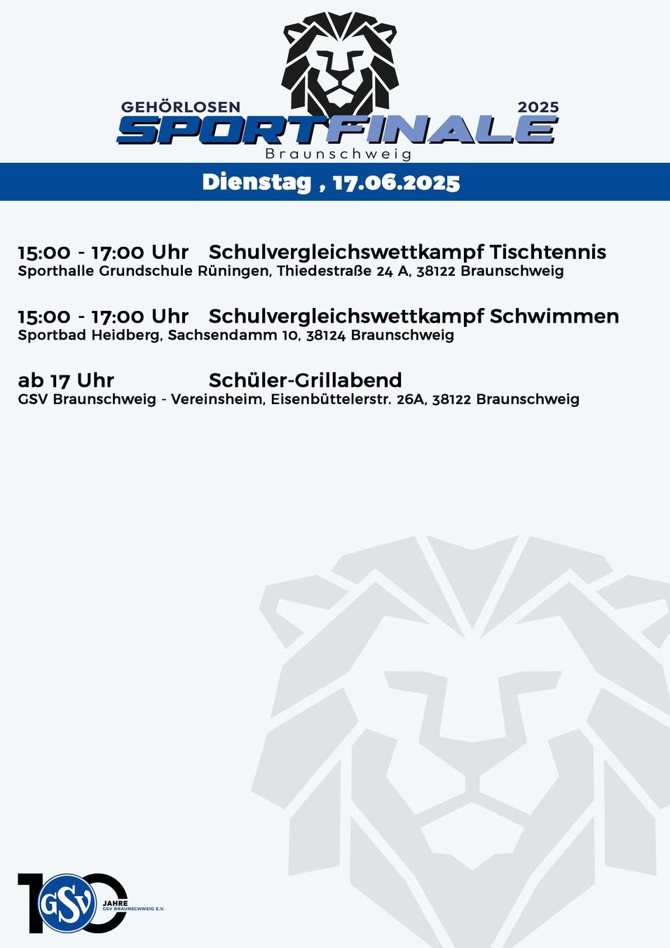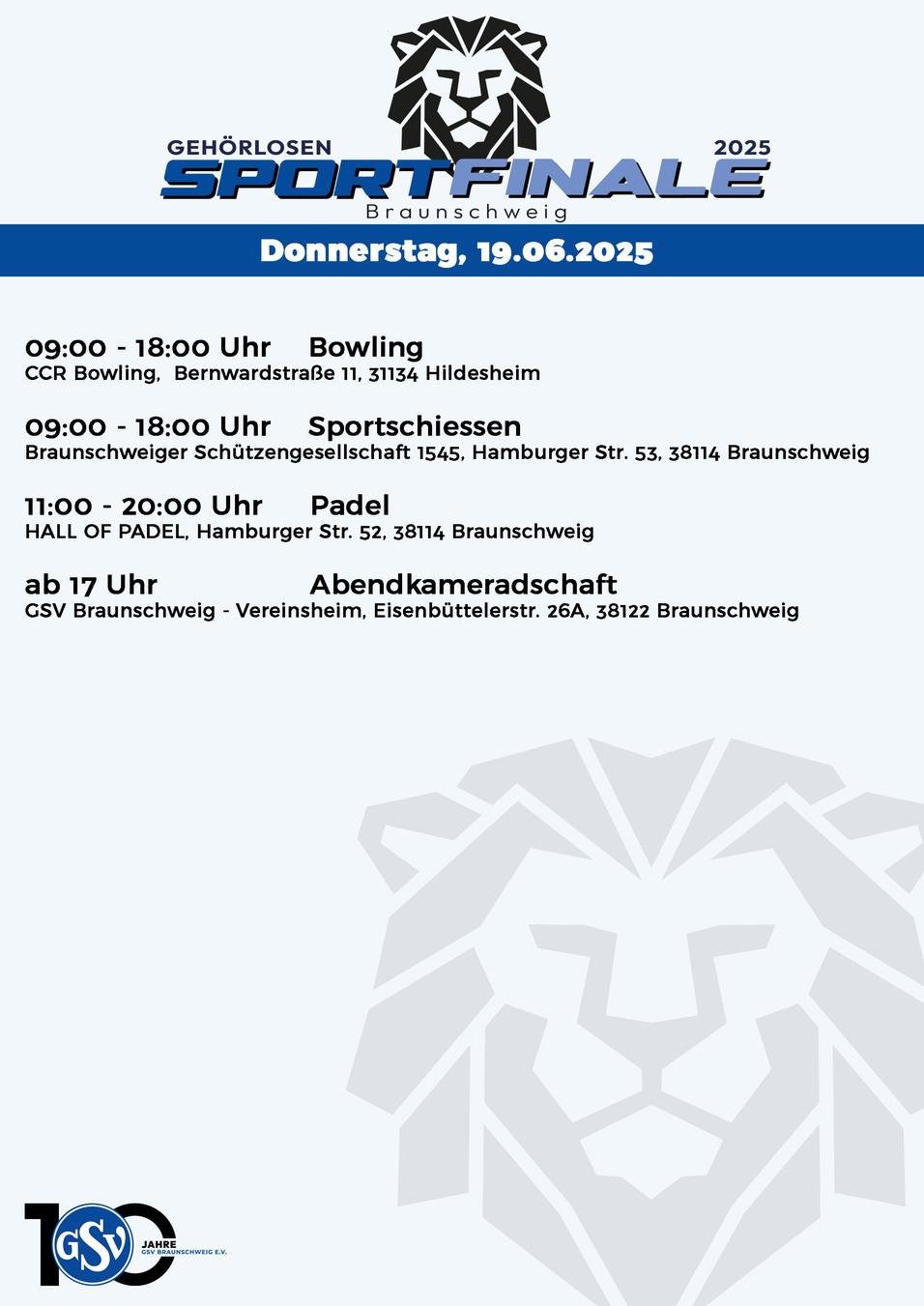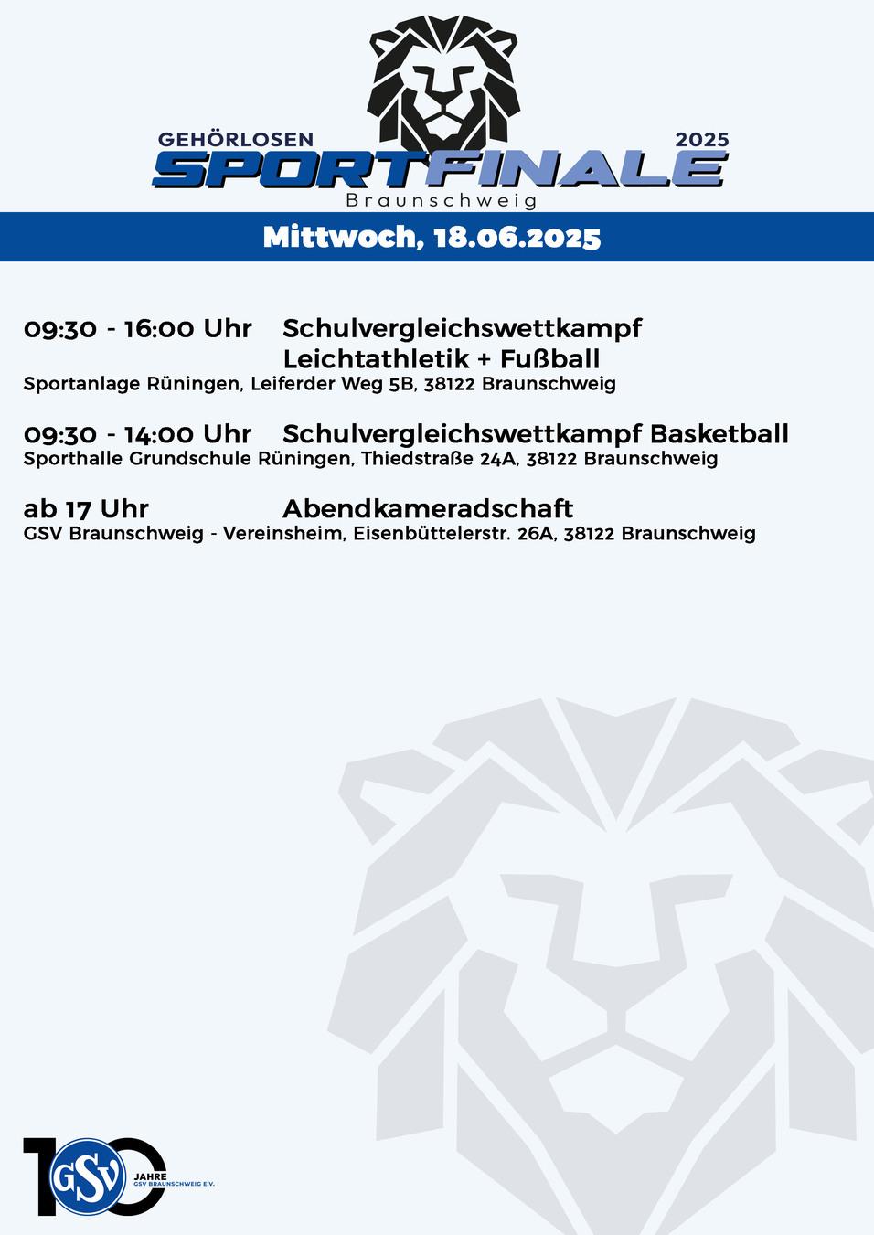 SportFinale 2025 vom GSV Braunschweig und Kulturveranstaltung vom Gehörlosenverband Niedersachsen. Es gibt ein vielseitiges Programmangebot.