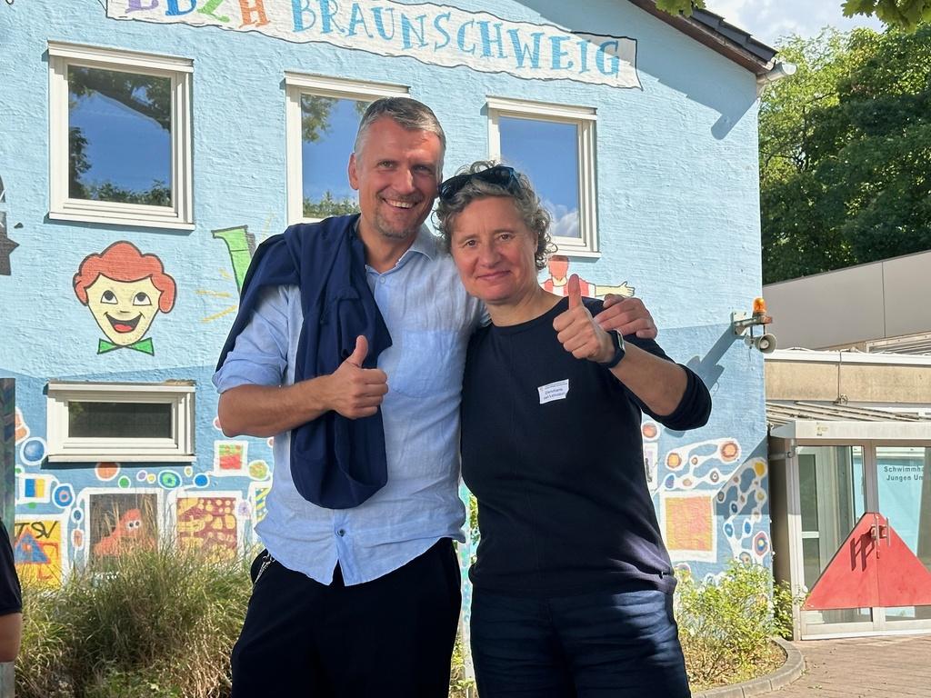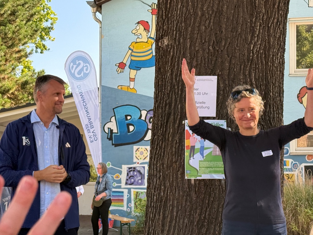 In diesem Rahmen übergab die Direktorin des LBZH BS, Christiane van Lohuizen, dem 1. Vorsitzenden des GSV, Thomas Ritter, ein Schild, das die Freundschaft und die Kooperation zwischen LBZH BS und GSV zum Ausdruck bringt.