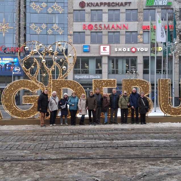Es hat uns allen riesig Spaß gemacht, den Ball bei den interessanten Bahnen ins Loch zu befördern. Die Zeit verflog so schnell, schade. Danach platzierten wir uns vor dem großen beleuchteten „Magdeburg“ am Hauptbahnhof zum Gruppenfoto für die GSN-Zeitung und GSV-Homepage.
