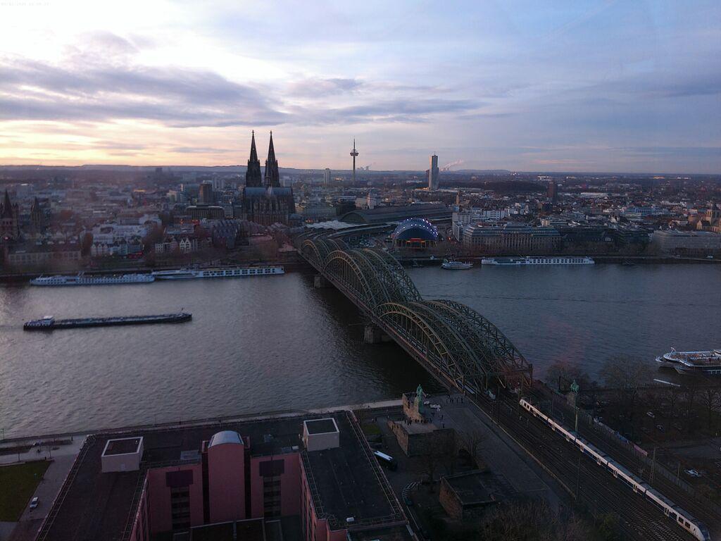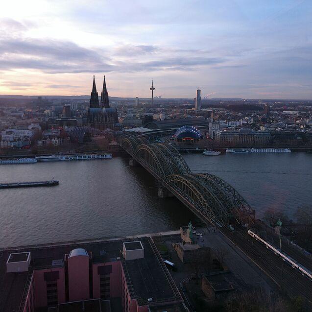 Die letzte Station des heutigen Tages war der Kölner Triangle-Turm, der 103,20m hoch und 2006 erbaut worden ist. Er hat 29. Etagen, oben befindet sich eine Aussichtplattform. Mit dem Fahrstuhl ging es nach oben, dort hatten wir eine ganz tolle Aussicht auf Köln, den Rhein und sogar bis Düsseldorf. Der Tag war ganz schön anstrengend, also ab ins Hotel, denn morgen gibt es eine Überraschung.