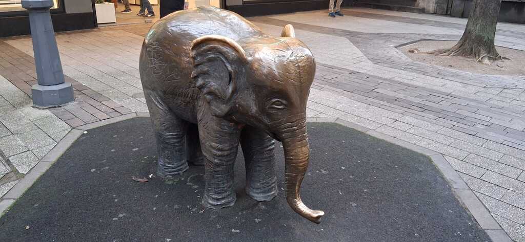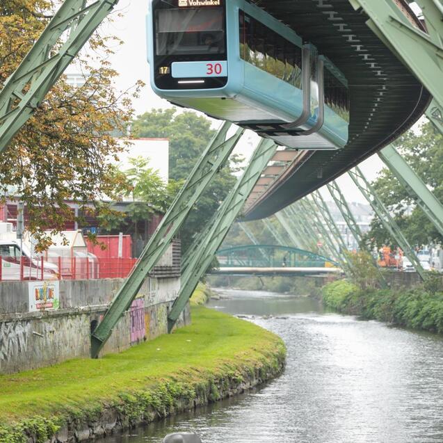Wohin führte uns heute unser Weg? Erst einmal zu Kölner Hauptbahnhof, um dann mit dem RE-Zug in 30 Minuten nach Wuppertal zu fahren. Na klar, alle wollten mit der berühmten Wuppertaler Schwebebahn fahren. Toll, wir waren begeistert. Sie fährt mit einer Geschwindigkeit von 60 km/h, eine Strecke von 13,3 km ab. Der Fluss unter der Bahn ist die Wupper. Dort suchten wir die Stelle, wo 1950 (21.07.1950) die 4 Jahre alte Elefantenkuh Tuffi aus dem fahrenden Zug in den Fluss gesprungen ist. Das Tier durfte in vielen Städte im Tram als Werbe-Aktaktion mitfahren. Im