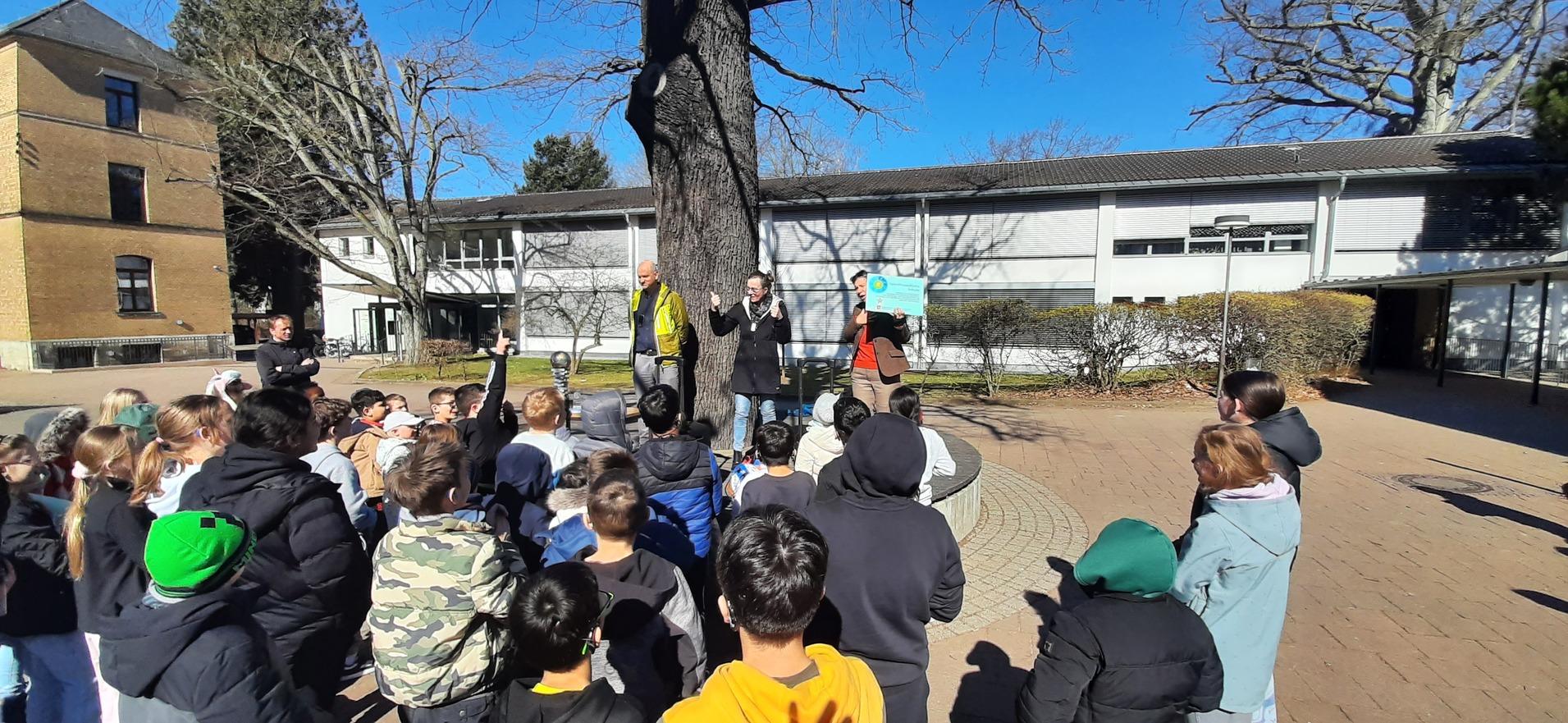 In einer Feierstunde auf dem Schulhof, bei kaltem aber strahlenden Wetter, konnten die Schülerinnen und Schüler des LBZH Braunschweig miterleben, wie Herr Herla von der Schulbehörde, die Auszeichnung an die Direktorin Christian van Lohuizen übergeben konnte.